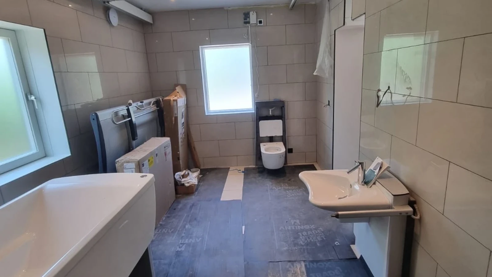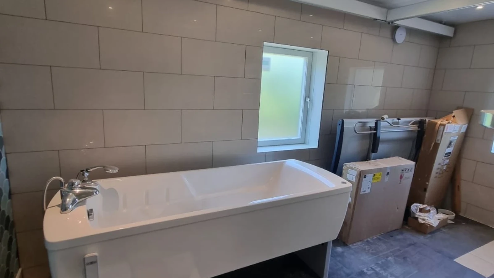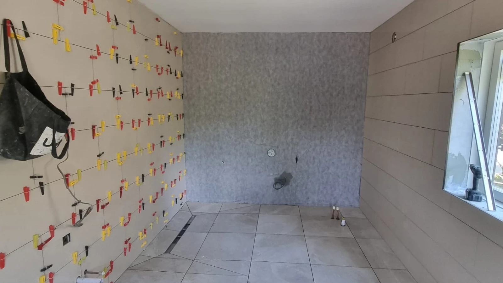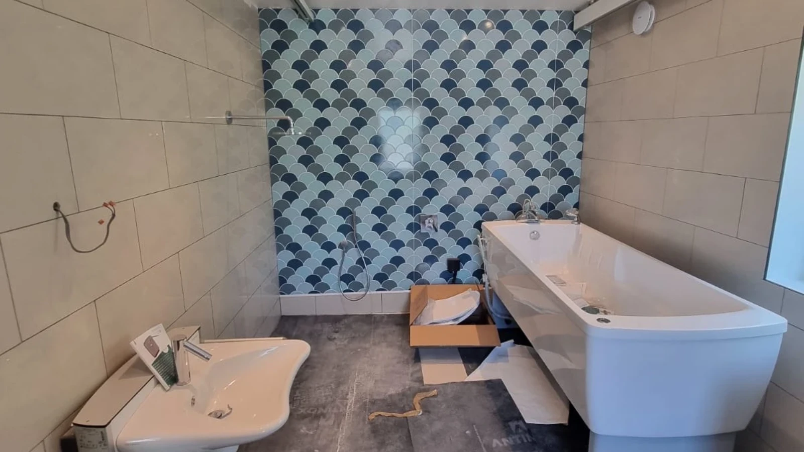 This Ashford bathroom project covered full wall and floor tiling within an occupied residential property. The brief required a clean visual layout with durable daily-use performance and minimal programme disruption.\n\nEG Tiling began with substrate and moisture-zone checks, then set out wall and floor lines from key visual points so tile cuts stayed balanced around fixtures. Wet-area preparation and finishing details were planned before installation started.\n\nThe final handover delivered a coordinated wall-floor finish with accurate alignment, neat joints and controlled silicone detailing at all interfaces. The room now combines practical durability with a clear, premium visual standard.