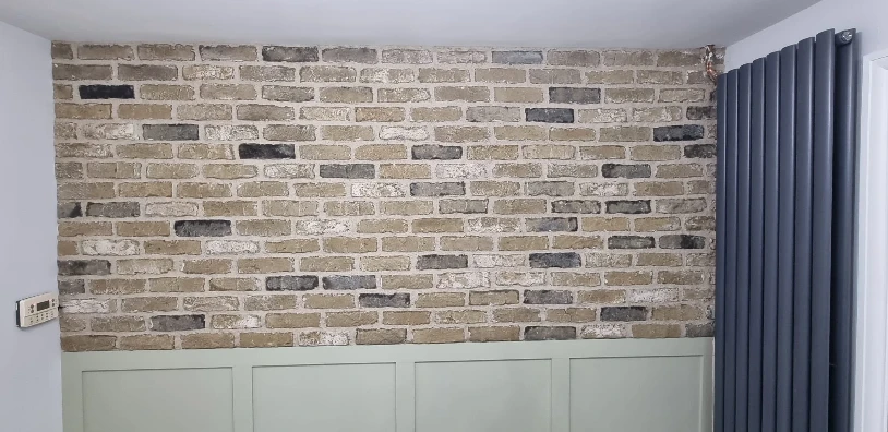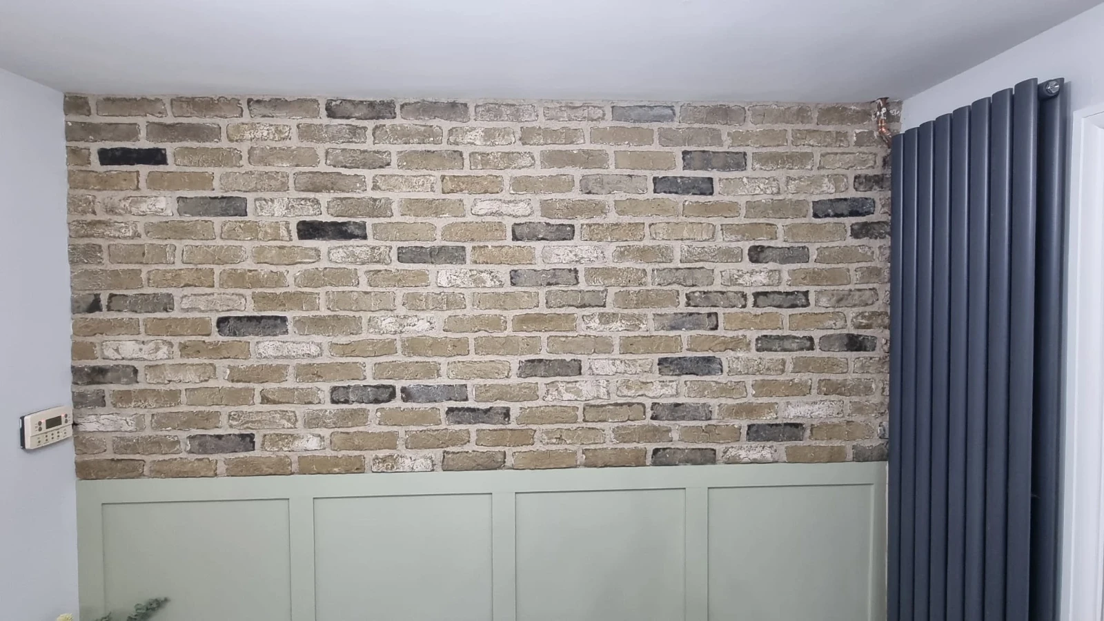 This project involved the professional installation of brick slips to create a feature wall in a dining room, adding warmth, texture, and character to the space.